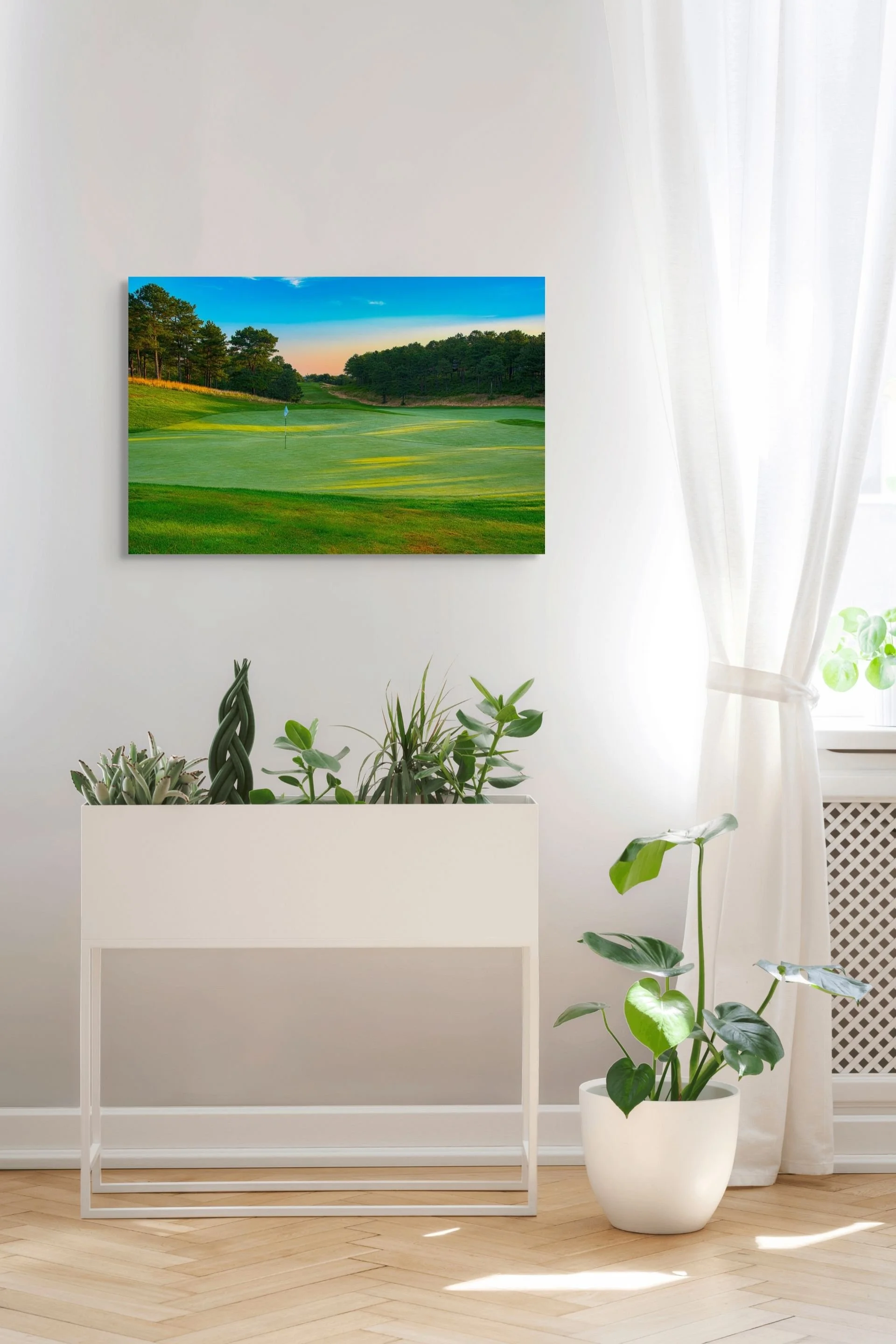 Taken from behind the green at the Pinehills Golf Jones Course this image is available as a 24X36 canvas wrap, metal print or acrylic print.
